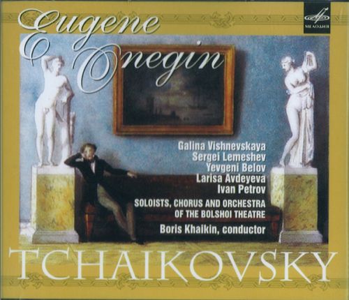 Galina Vishnevskaya (Tatiana), Evgeni Belov (Onegin), Sergei Lemesev (Lensky), Ivan Petrov (Gremin), Valentina Petrova (Olga), etc.