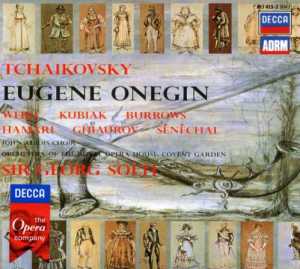 Este poate cel mai celebru disc occidental cu Evegheni Oneghin, și cel mai apreciat (drept urmare este și cel mai sump). Într-adevăr orchestra este excelentă sub Solti, iar vocile sunt foarte bine alese. E drept, le lipsește nativul. E o înregistrare care în ansamblu e de un nivel deosebit, chiar dacă orice urmă de autenticitate e pierdută. Ca să prefigurez o a doua parte a acestui articol, depre videografia lui Evgheni Oneghin, voi spune și că muzica de aici a fost folosită pentru filmul operă „Eugene Onegin” din 1988 în regia lui Peter Weigl.