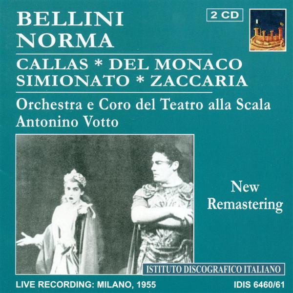 Maria Callas (Norma), Giulietta Simionato (Adalgisa), Mario Del Monaco (Pollione), Nicola Zaccaria (Oroveso).