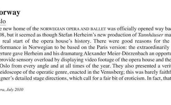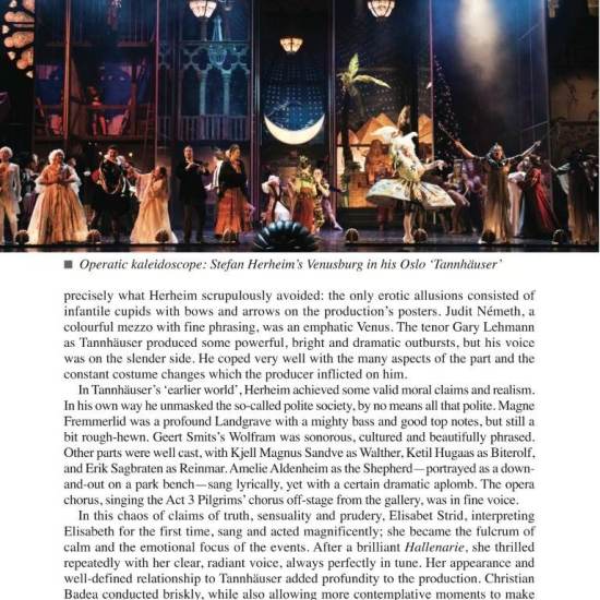 Și ultima cronică pe care am găsit-o este în numărul din iulie 2010, pentru „Tannhäuser” de la opera din Oslo: