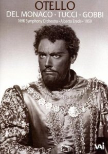 Mai degrabă Mario del Monaco, cu care practic începe epoca discurilor de studio și de asemenea și a versiunilor filmate. În cazul „taurului de alamă din Milano”, cum i se spunea, există câte două versiuni din fiecare categorie, și o listă nesfârșită de live-uri audio. Discurile de studio sunt aproape identice, ambele sunt produse de DECCA, în 1954 și 1961, alături de marele tenor cântă Renata Tebaldi, o Desdemona celebră și Aldo Protti, un Jago monocolor. Dirijorii sunt diferiți, maniera însă aproape la fel, Alberto Erede și Herbert von Karajan, acesta din urmă fiind în general mai apreciat, deși, repet, diferențele față de versiunea precedentă sunt nesemnificative, astfel că, de dragul tinereții, voi recomanda prima versiune, din 1954.