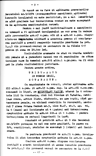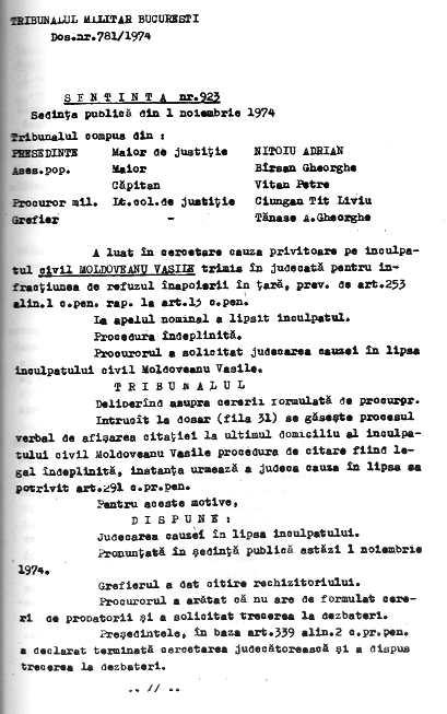 Notă: Informațiile din acest articol, precum și reproducerile din dosarul penal se datorează doamnei Ioana Diaconescu. Domnia sa a obținut informațiile respective de la CNSAS și le-a publicat în cartea Vasile Moldoveanu – Un tenor român pe patru continente: Pasiune și credință, București, 2011, Editura Muzicală.