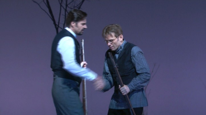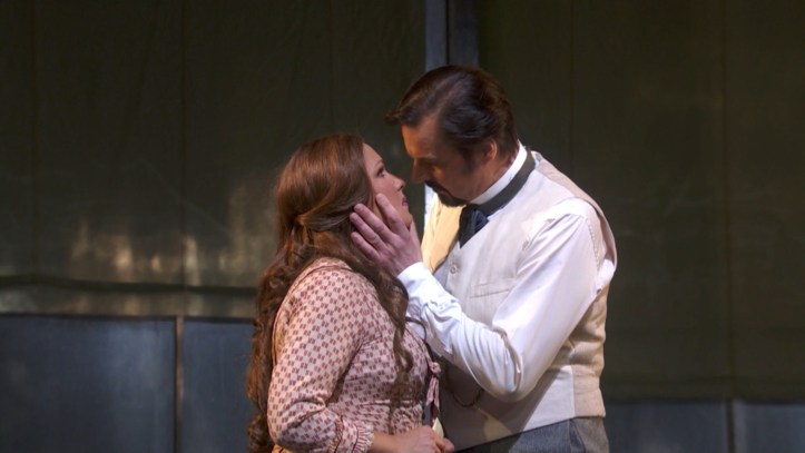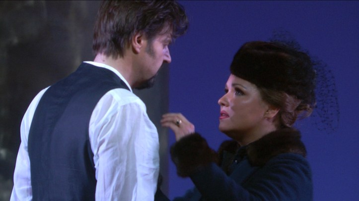 Acum vreo zece ani, Peter Gelb a început reînnoirea Met-ului prin producții ceva mai inovatoare. English National Opera a fost o sursă pentru puneri în scenă moderne, dar nu șocante, ci frumoase, primul import fiind Madama Butterfly în regia lui Anthony Minghella. Pe vremea aceea circula o butadă în Londra: dacă vrei să asculți voci bune te duci la Royal Opera, dar dacă vrei să vezi spectacole frumoase mai bine alegi ENO. Numai că, de prin 2006 încolo, Evgheni Oneghin a cunoscut o perioadă senzațională din punct de vedere regizoral (Cerniakov la Bolșoi, apoi circulând la Paris, La Scala sau Royal Opera, Carsen la Met, Holten la Royal Opera, Herheim la Amsterdam etc.), astfel încât producția lui Deborah Warner adusă la Met în 2013 a părut cam desuetă încă de la premieră. Și în 2013, la fel ca acum, mi-a fost greu să accept anacronismul țevilor de încălzire și murdăria geamurilor din veranda Larinei în primul act (e totuși o moșiereasă, nu? iar acțiunea e fixată clar la sfârșit de secol XIX, nu?). O singură consolare: sărutul lui Oneghin urmând refuzului ofertei din scrisoare, replicat în oglindă la final, în sărutul senzual al Tatianei din momentul rupturii definitive, subliniind perfect psihologia (și valoarea dramatică a operei) neasumării iubirii. O subliniere a întregului șir de regrete și factualități care urmează după căderea cortinei.