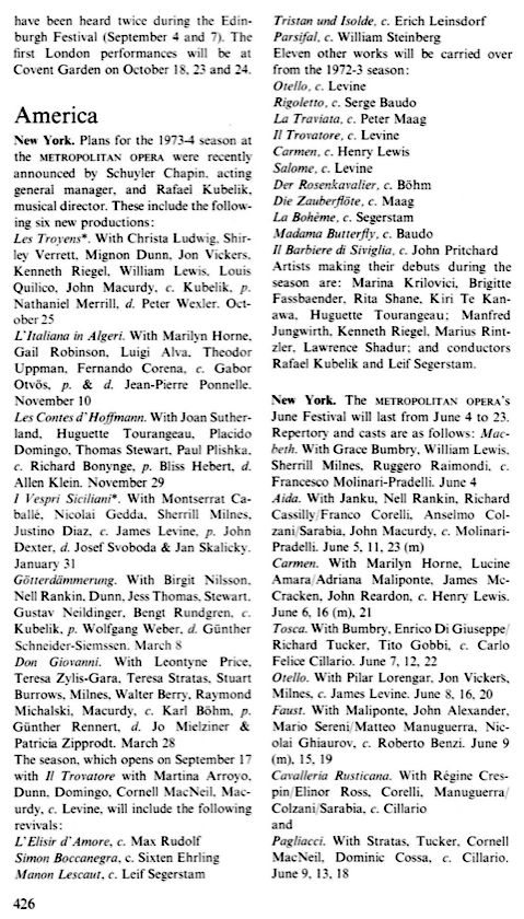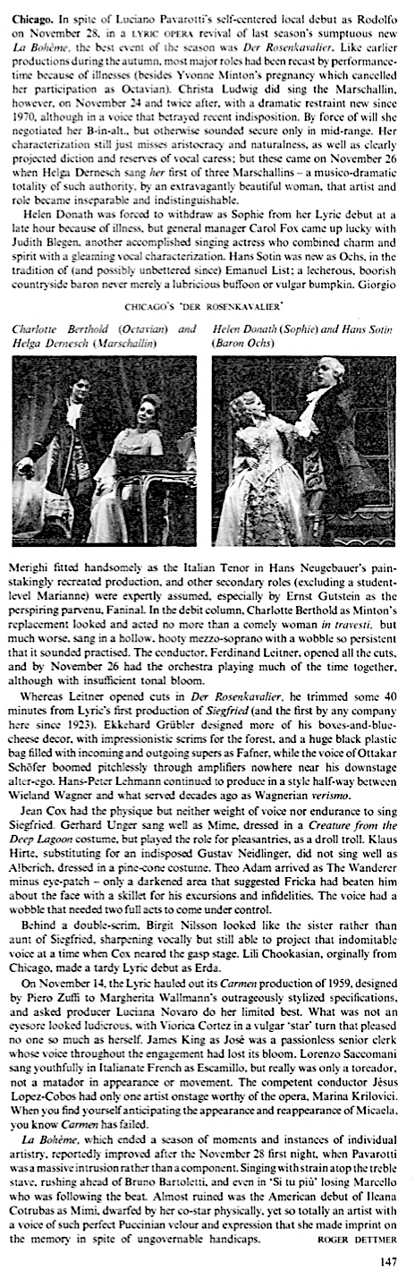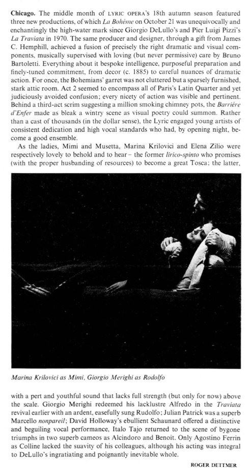 Anul 1973 debutează cu cronica de la Chicago, pentru La bohème din 21 Octombrie 1972: