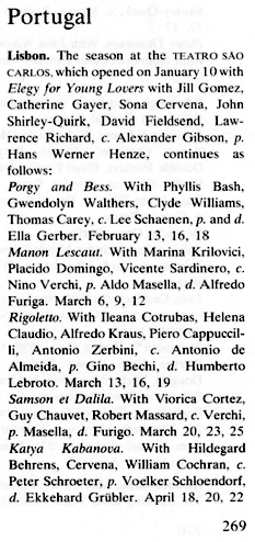 În 1975, Krilovici va fi Manon Lescaut la Lisabona (anunțul e făcut public în Martie, iar în Iulie apare și cronica semnată de Richard Crowder):