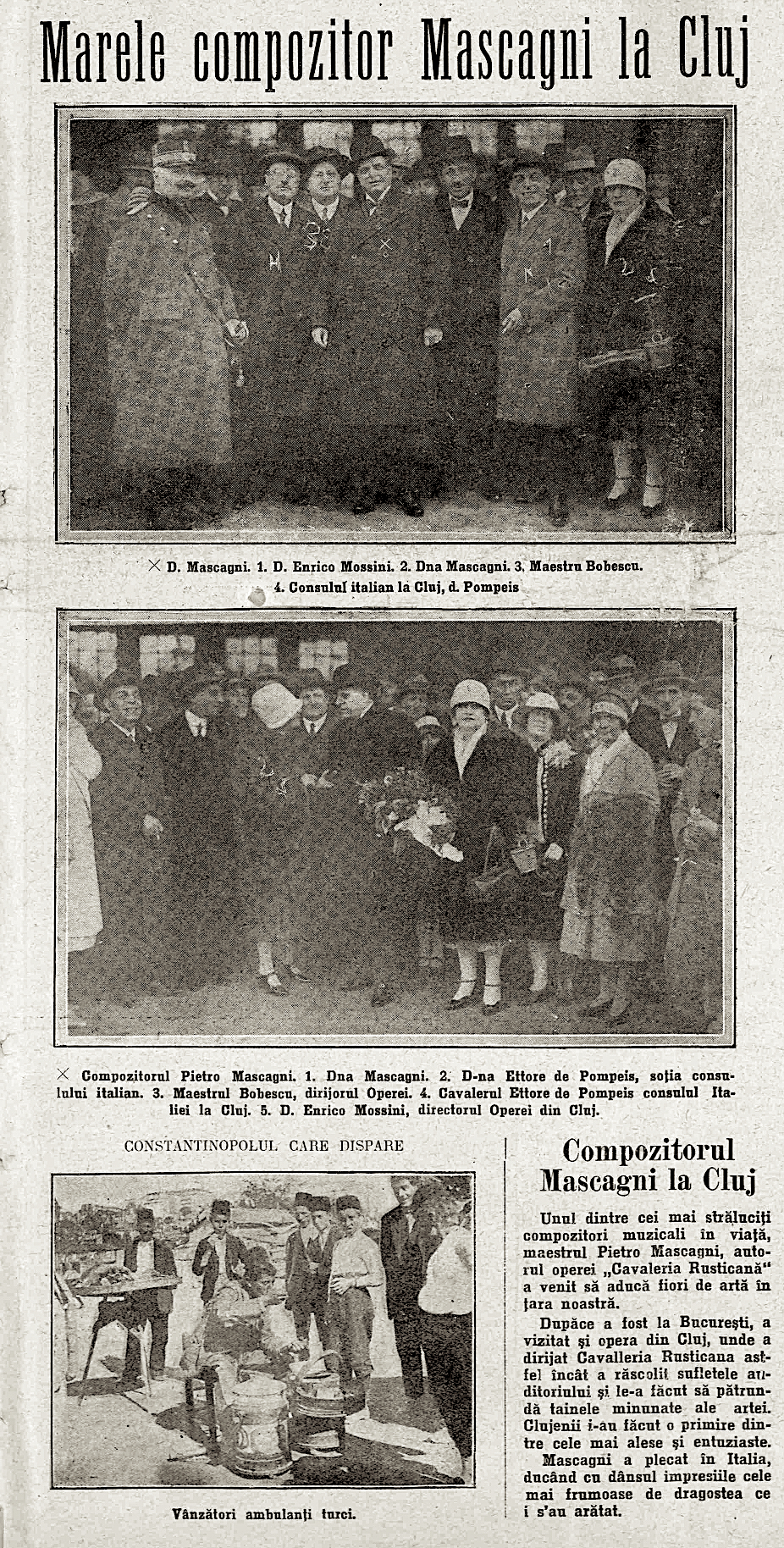 În Mai, Opera clujeană prezenta Cavalleria rusticana dirijată chiar de către compozitorul ei, Pietro Mascagni, la câteva zile după ce acesta condusese muzical aceeași operă și la București.