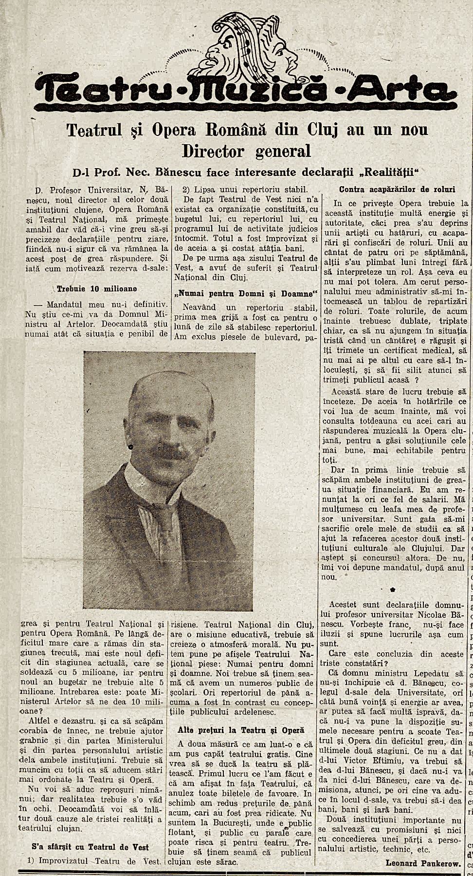 Din păcate, rubrica „Teatru-Muzică-Arta” dispare din revista Realitatea ilustrată pe parcursul anului 1928, fiind înlocuită cu știri din lumea cinematografiei, astfel încât nu știu dacă Nicolae Bănescu și-a putut îndeplini promisiunile. Biografiile sale indică lapidar doar faptul că a condus instituția clujeană timp de un an.