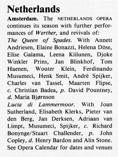Amsterdam e următorul pas. Dama de pică, în regia lui Pountney și decorurile Mariei Bjørnson – un succes, Badea „având sub control partitura și determinând Orchestra Filarmonică Radio să cânte cum rareori reușește” (Joel Kasow – Opera, Septembrie 1982). Vor fi zece spectacole, la Amsterdam, Rotterdam, Scveningen și Utrecht. Apoi revine pentru Vecerniile siciliene (1984), Turandot (1985), Evgheni Oneghin și Madama Butterfly (în 1987).