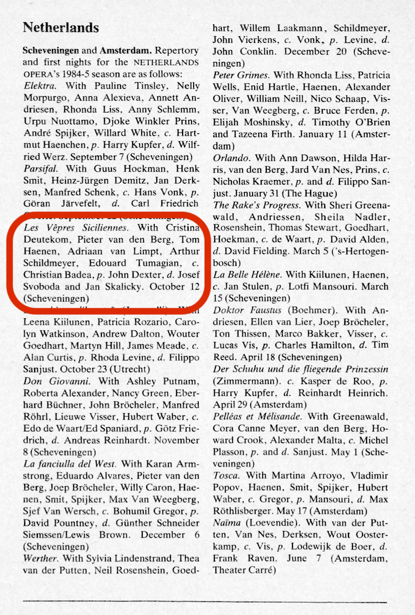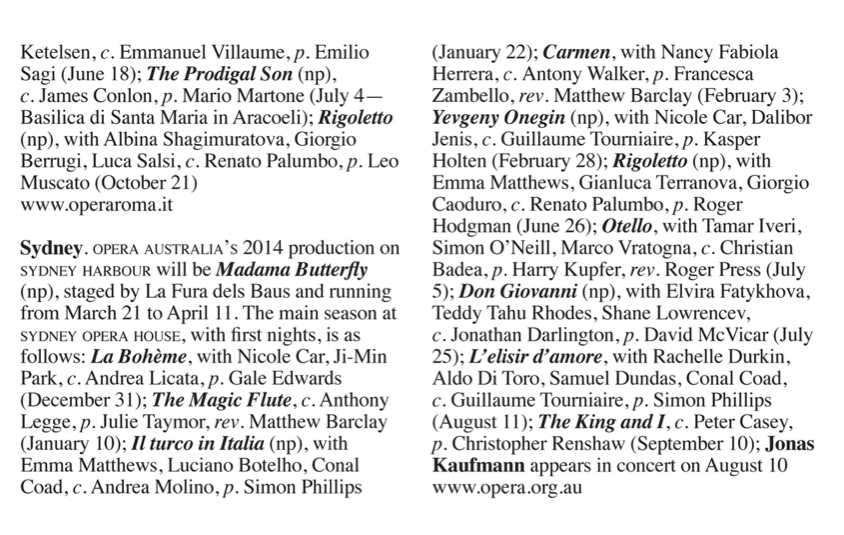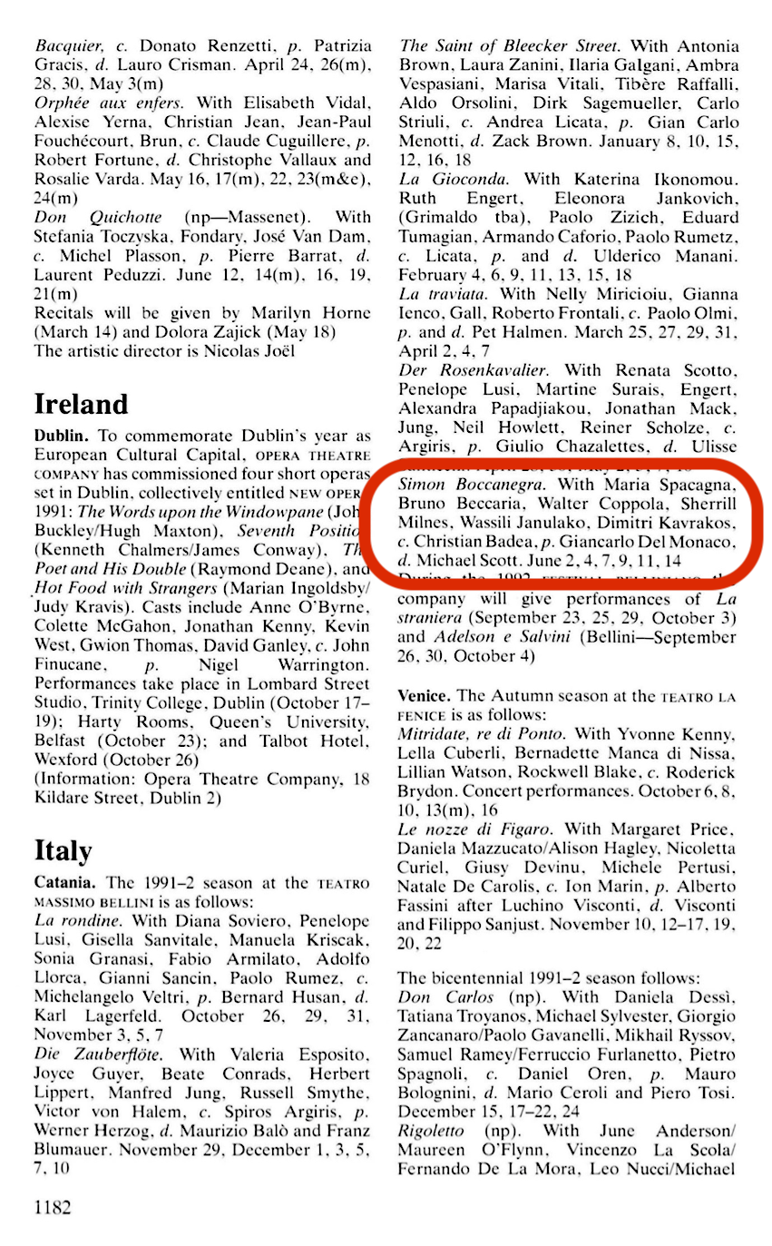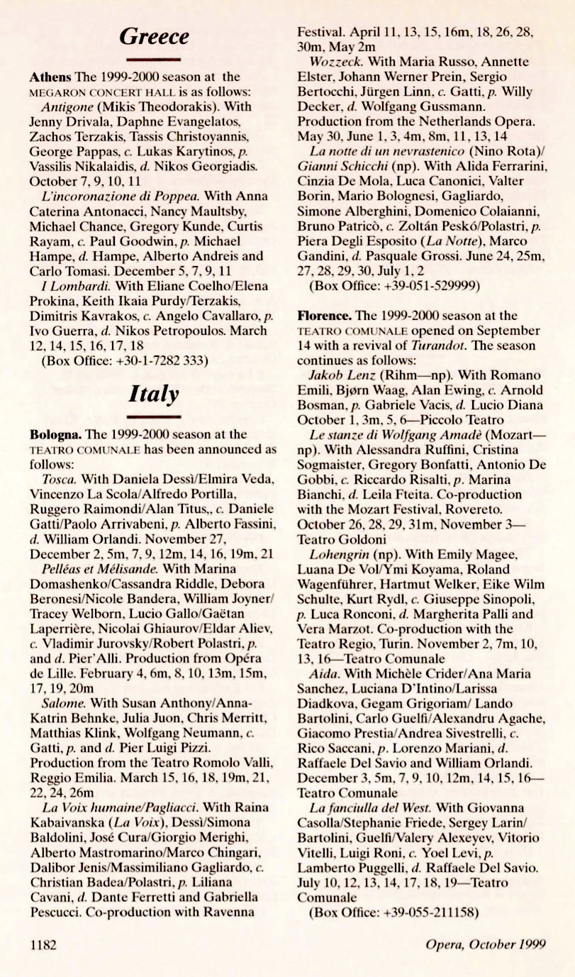 2. Sa nu uitam ca arhiva de la Covent Garden este incomplete – nici macar Oedipe nu este prezent in bazele de date – deci este posibil ca atat Silvestri cat si Comissiona sa fi dirijat mai mult.