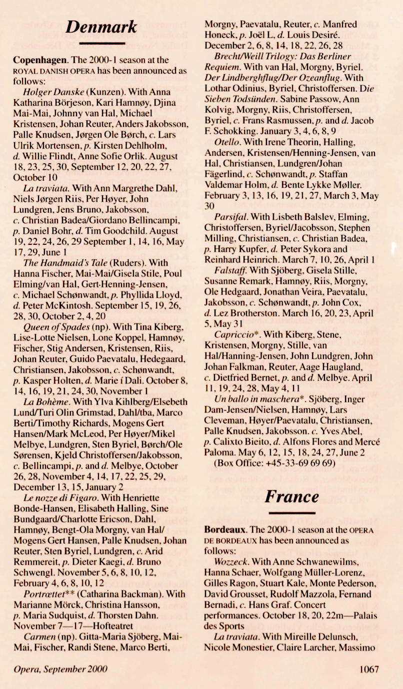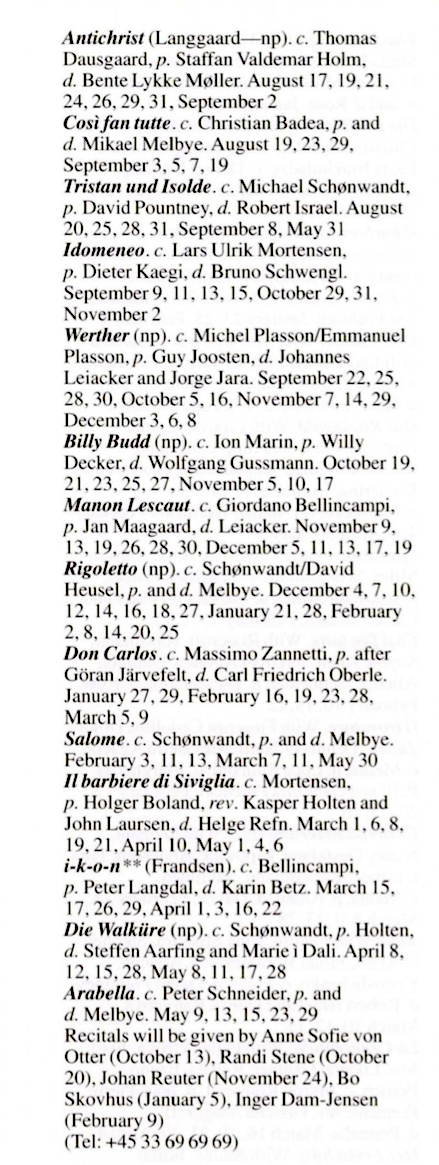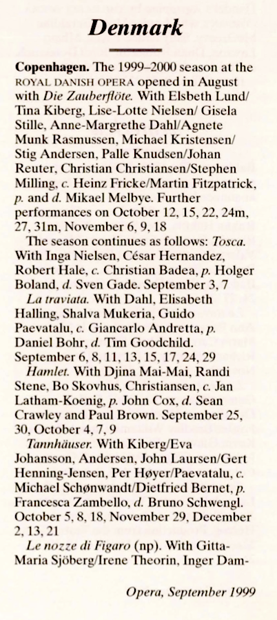 Zona scandinavă ocupă un loc important. La Copenhaga, după Aida (1997) și Tosca (1999), urmează 11 spectacole cu La traviata și alte patru cu Parsifal în 2001, șapte Così fan tutte în 2003 și cinci cu Macbeth în 2005.