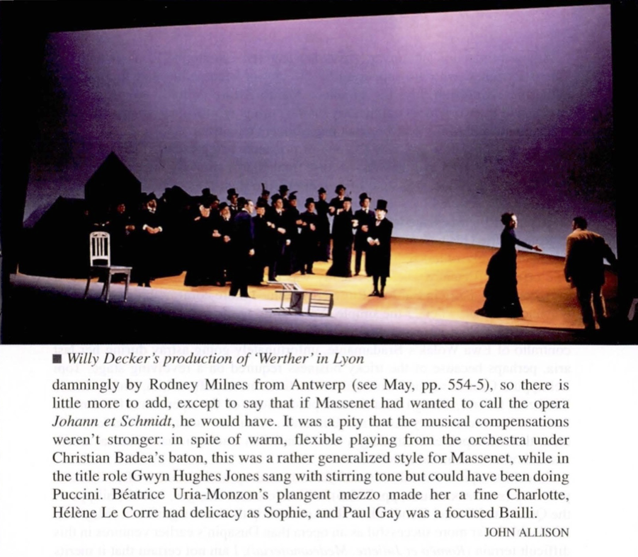 Mai întâi e Roméo et Juliette, cu Rolando Villazón, o viziune muzicală „concisă și controlată”, practic momentul cel mai interesant al debutului de stagiune din 2001, iar în anul următor inevitabila La bohème și Cavalerul rozelor în regia lui Kasper Holten, la acea vreme director al Operei Regale din Copenhaga, cu un Badea „temperat”, pentru ca în spectacolele cu Werther din 2003, direcția sa să fie „calmă și flexibilă”.