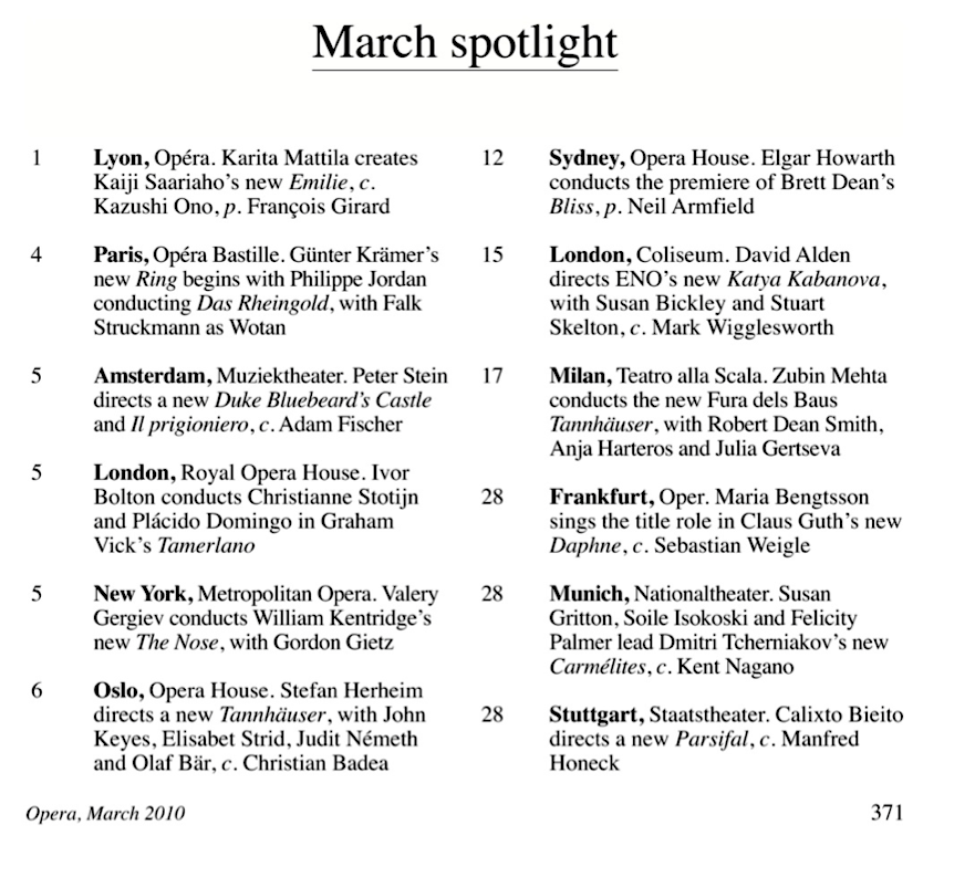 La vârf: Metropolitan Opera of New York, Wiener Staatsoper, The Royal Opera House of Covent Garden, London