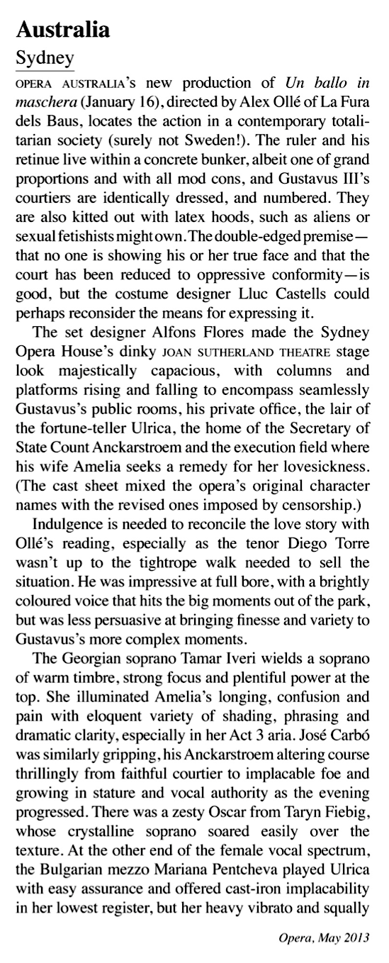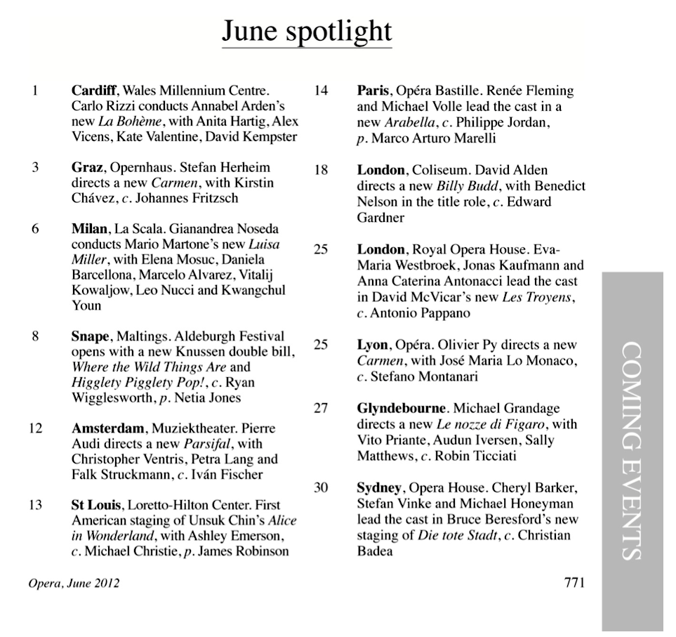 Descrisă de către Daily Telegraph drept „biblia industriei”, revista britanică Opera a fost și este în continuare cel mai important comentator al scenei lirice mondiale din ultimii 65 de ani. Publicația a fost fondată în 1950 de către Lordul Harewood și de atunci acoperă fără rival evenimentele din lumea operei, printr-un amestec de cronici (spectacole, înregistrări, cărți) și analize, plus publicarea calendarelor teatrelor de operă din toată lumea, dar și prin faimoasa rubrică We hear that („Am auzit că”n.n.). Editori șefi de durată lungă – Harold Rosenthal, Rodney Milnes și (din anul 2000) John Allison – au asigurat continuitatea revistei, iar consiliul editorial include cei mai remarcabili critici de operă din presa britanică. Cu sediul la Londra, publicația dispune de o inegalabilă rețea internațională de corespondenți, acoperind spectacole din întreaga lume.