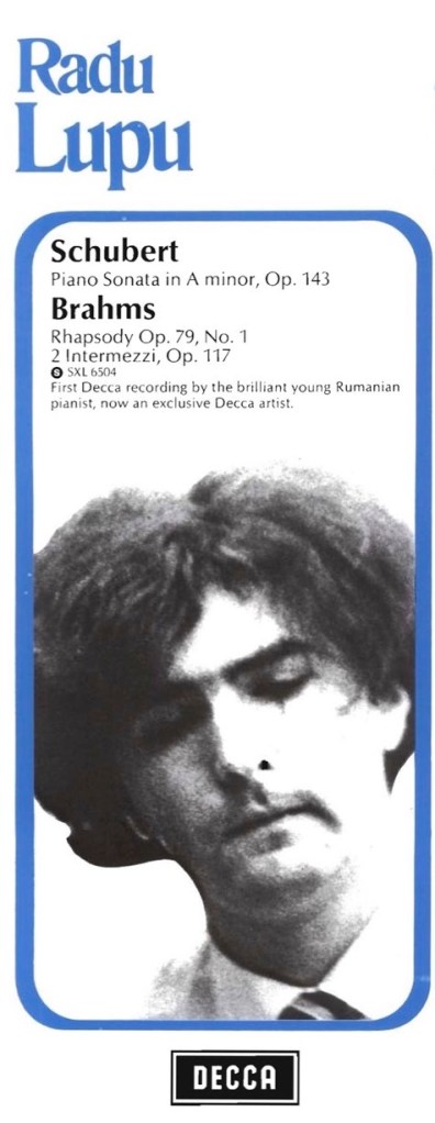 Iar după un recital foarte bine primit de public și de critică la Queen Elisabeth Hall, în 1970, casa de discuri Decca i-a obținut semnătura pentru o colaborare care va dura peste două decenii. În acel recital, piesa care a atras atenția cel mai mult a fost Sonata nr.14 în La minor, D784 de Schubert, cu care Radu Lupu câștigase semifinala concursului de la Leeds și pe care BBC a inclus-o într-un dublu album dedicat acestei competiții. Contrastele din interpretare oscilând între atacuri îndrăznețe și relaxări extreme sugerează o personalitate pe cale de a se cristaliza, însă tehnica și viziunea generală entuziasmează critica muzicală britanică. Astfel că, în momentul în care se produce debutul în studioul Decca (Mai 1971), cu un disc cuprinzând aceeași sonată de Schubert urmată de un întreg program Brahms, Radu Lupu era deja un nume cunoscut, ale cărui înregistrări erau așteptate. Însă impresia cea mai puternică pe care a lăsat-o în această înregistrare a fost maturitatea cu care și-a impus viziunea artistică, în special în Sonata de Schubert, cu totul neașteptată pentru un tânăr de abia 26 de ani.