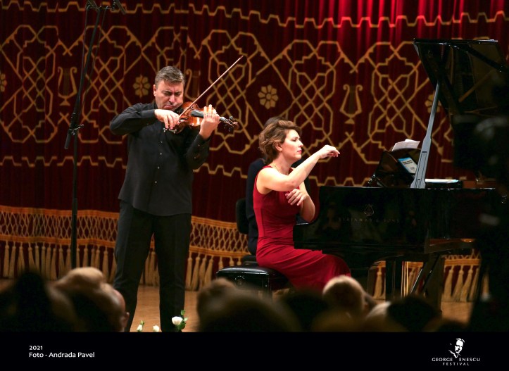 A doua întâlnire cu Maxim Vengerov la Enescu 2021 (după Concertul de Șostakovici cu Orchestra Națională a Franței dirijată de Cristian Măcelaru) a fost în intimitatea Ateneului, într-un recital cameral cu sonate pentru vioară și pian. Partenera lui Vengerov a fost Polina Osetinskaia, o pianistă mai puțin celebră decât starul viorii, care și-a asumat rolul secundar în această după amiază.