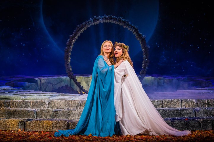 Însă acest cadru trebuia animat în toate sensurile, ca suflet și ca inimă, de un regizor, care a lipsit, din păcate. Alice Barb nu a avut nici o idee de nici un fel, ci doar o mare teamă: aceea că, Norma fiind o operă destul de statică, acest cadru trebuia umplut cu ceva. Și de aici începe o avalanșă de erori: o coregrafie nu doar inutilă ci și nepotrivită, de parcă am fi în Aida, doi pitici pe post de spiriduși pentru a susține ideea de feerie, dar care au introdus grotescul într-o dramaturgie care are în centru totuși perfecțiunea clasică elenistică a teatrului antic și, în fine, proiecțiile multimedia ale unor sfere celeste new age, de un gust foarte discutabil, dublate de niște așa zise efecte speciale ale unor fulgere și lumini stroboscopice ce însoțeau anatemele Normei. Și totuși cred că am identificat o idee, cea a schimbării culorii rochiei Normei din alb, atunci când personajul e în timpul funcției publice, aceea de mare preoteasă, în roșu, atunci când viața personală interferează cu cariera, afectându-i KPI-urile, ceea ce e copilăresc de puțin. În acest al doilea unghi, al dramaturgiei și al mișcării de scenă, totul a fost un fiasco.