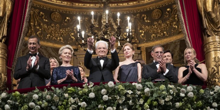 Prima alla Scala a sezonului 2022/23 a început cu aplauzele publicului pentru loja oficială în care apăruseră Sergio Mattarella (președintele Italiei), Ignazio La Russa (președintele Senatului Italiei), Giuseppe Sala (primarul Milano), Giorgia Meloni (prim ministra Italiei) și Ursula von der Leyen (președinta Comisiei Europene), ceea ce a determinat adăugarea imnului Uniunii Europene pe lângă cel al Italiei, cântat în deschidere de orchestră.