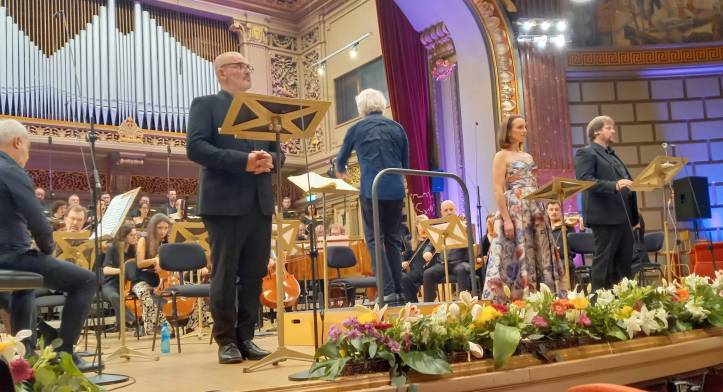 Prima întrebare pe care ne-am pus-o mulți dintre cei prezenți la concert a fost: cine sunt cei din corul acesta enigmatic, de numai 30 de persoane, care cântă atât de bine? Ei bine, sunt un ansamblu polonez din Wrocław, în rezidență la filarmonica locală. Au fost vedeta serii, prin dicție, agilitate și o geometrie variabilă impusă de dirijor, care schimba poziția vocilor în ansamblu în pauzele dintre părți. Au fost ovaționați prelung la final.