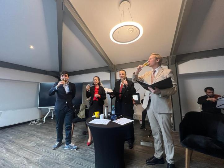 Dan Macavei, Cleopatra David, Nicolae Simonov, Ștefan Lamatic în spectacolul Bach, colegul de birou