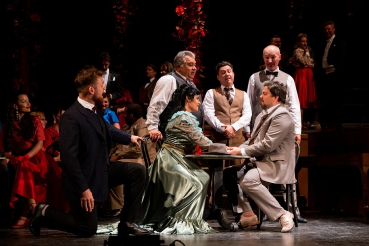 Scena de la cafeneaua Bullier e pusă în scenă destul de reușit. Poate că efectul bucăților de iederă veștejită care cad pe rând înaintea duetului final a surprins, în primul rând prin zgomotul provocat (dar în ton cu ritmul muzicii), însă mie unuia mi-a plăcut efectul. Nu e nimic altceva decât schimbarea Magdei, desprinderea de un stil de viață și de bătrânețea lui Rambaldo. Și, în fond, acest act doi nu e decât o altă variantă a cafenelei Momus din La bohème. Cu un final cel puțin la fel de emoționant.