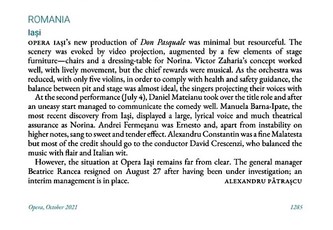 Decembrie 2019: Festivalul Enescu 2019 și Les Indes Galantes – Opera Iași