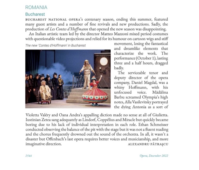 Decembrie 2022: Les Contes d’Hofmann – ONB